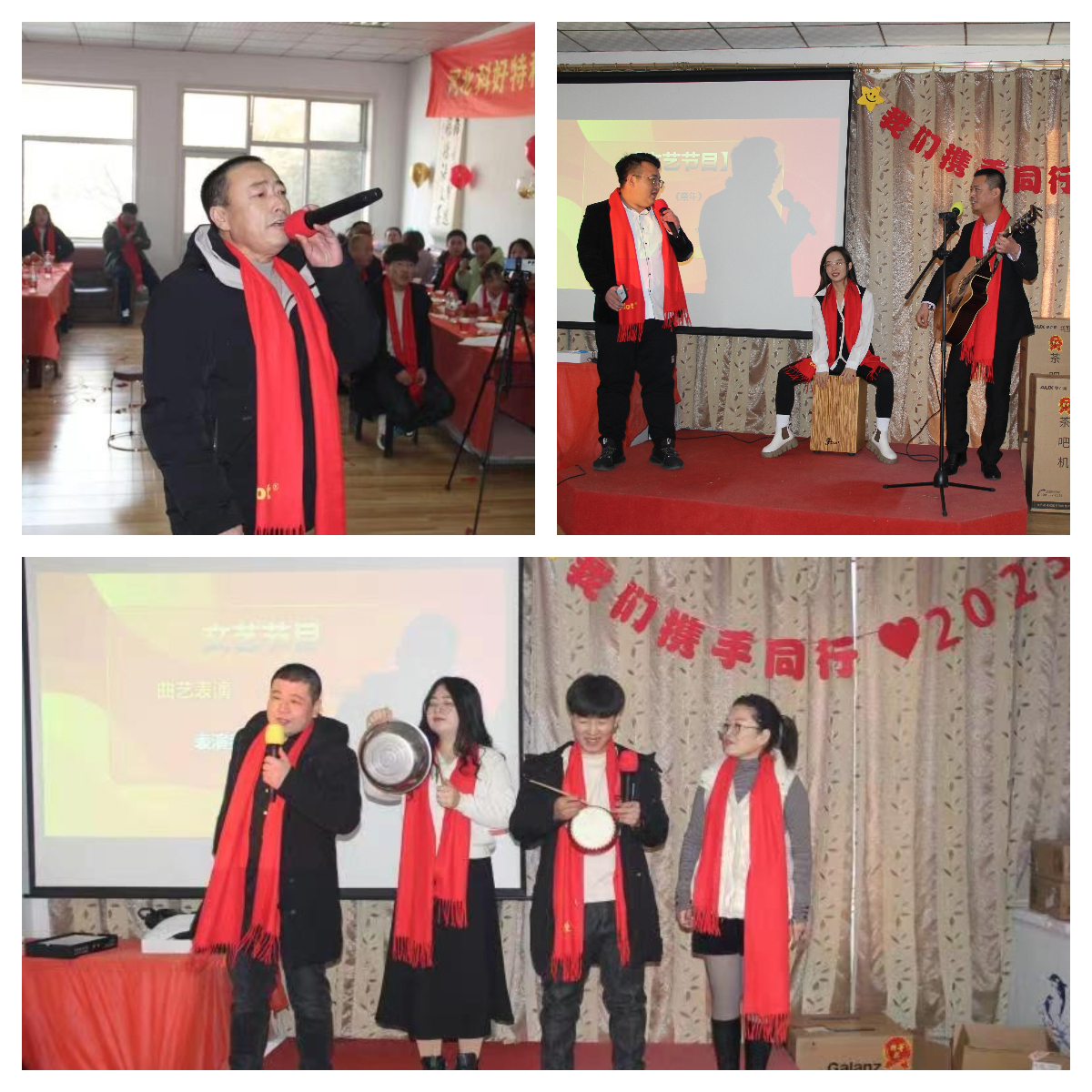 在掌聲和歡呼聲中,年會活動中穿插了是精彩紛呈的節(jié)目表演,銷售部、設(shè)計(jì)部、生產(chǎn)部的同事們輪番上陣,有歌曲演唱、有吉他表演、有三句半相聲...不得不說,我們的同事真是藏龍臥虎,多才多藝。
